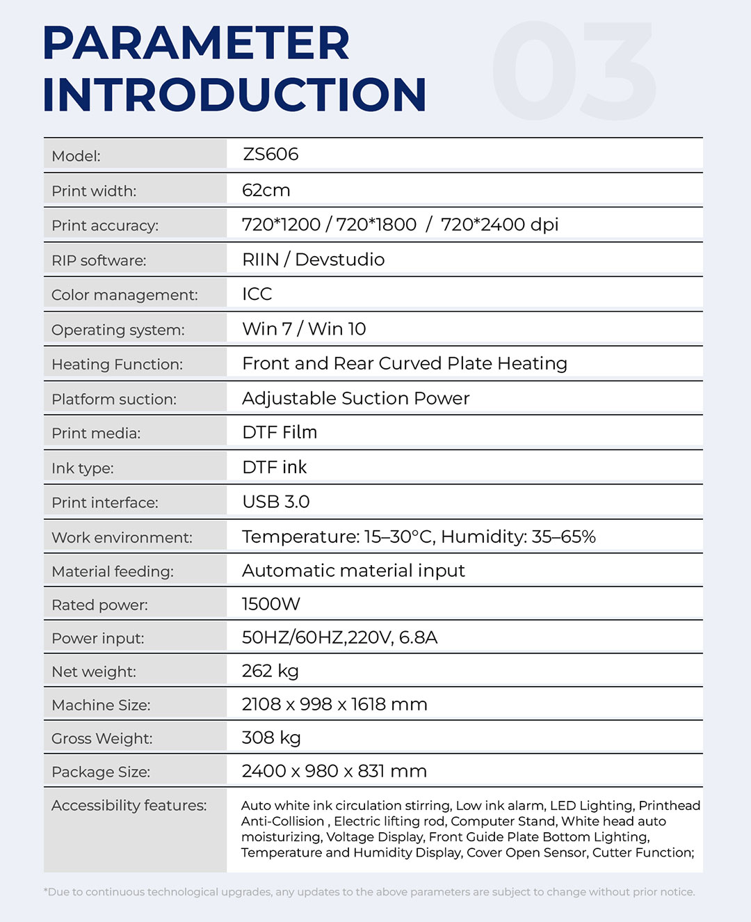 ZS606 24 inch Six-head DTF Printer i3200-A1 Print head