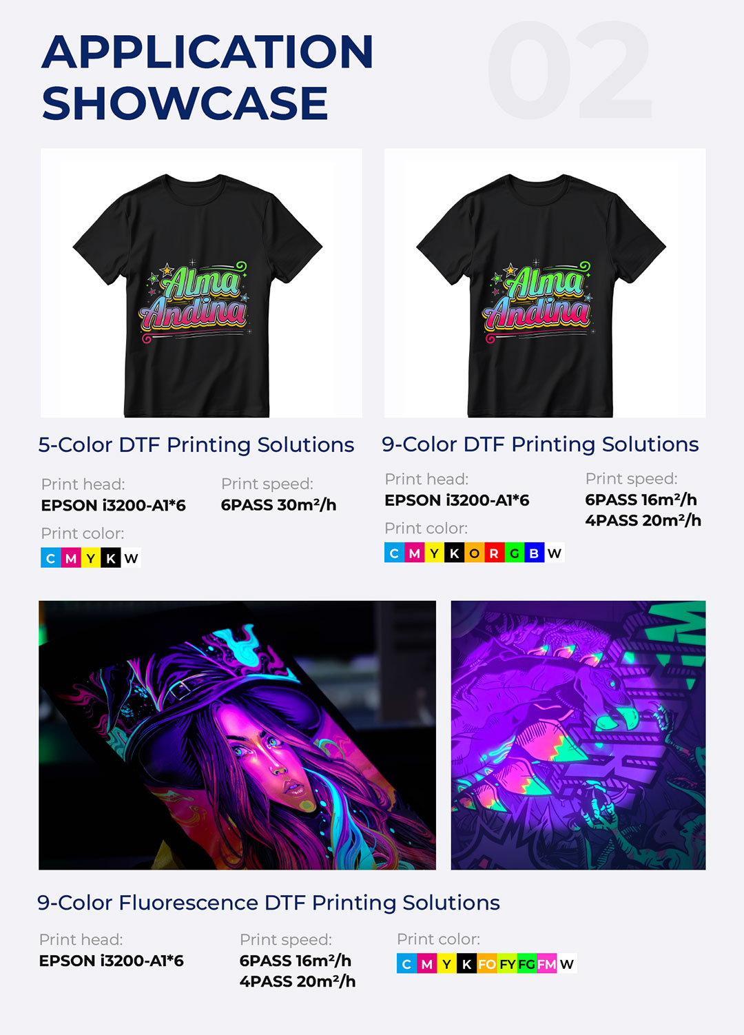 Our main products: DTF printer, UV DTF printer, DTF powder shaker and dryer.All in one DTF printer, sublimation heat system for directly printing machine, flag printing machine, smoke purifie , design and manufacture equipment according to customers' requirements etc.The company focuses on equipment research and development innovation, as well as technological optimization. Our goal is to become the industry's top tier equipment supplier with the highest quality.